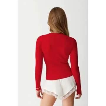 KIGRAD Womens Open Front Button Up Cropped Cardigan Ribbed Knit Long Sleeve Shirt Casual Solid Crop Top Cardigan Sweater Red