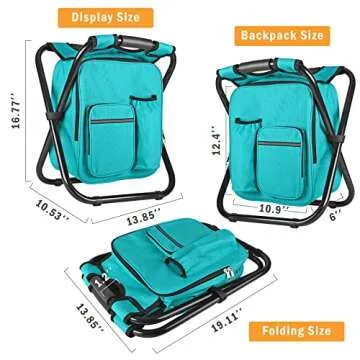 Kikerike Backpack Stool Cooler Chair Heavy Duty 400 LBS Max Load Portable Lightweight Stool Backpack Folding Fishing Cooler Stool for Camping Hunting Fishing - Blue-Green