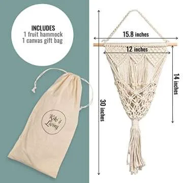 Kiki's Living Wall Fruit Basket for Kitchen - Macrame Wall Mounted Fruit Basket - Macrame Fruit Hammock - Macrame Fruit Basket - Boho Wall Baskets - Boho Kitchen Decor - Fruit Hanging Basket