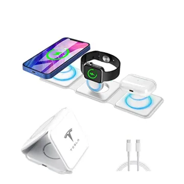 Introducing the KIKIMO for Tesla Wireless Charger 3 in 1 – your ultimate travel companion tailored for Apple enthusiasts! This sleek, versatile charging station is not just a solution for your battery woes but a game-changing accessory designed to keep your gadgets powered up. Engineered by **Tesla**, it offers an impressive triple charging capability, allowing you to simultaneously charge your **iPhone**, **Apple Watch**, and **AirPods** without the hassle of bulky cords. Say goodbye to...