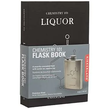 Show moreIntroducing the Kikkerland Chemistry 101 Flask Book—the ultimate fusion of whimsy and functionality! This clever product is designed to look just like a book, letting you conceal your favorite beverages with ease. Crafted from high-grade stainless steel, this flask is not just durable and leak-proof, but also features a screw-on, captive top for secure storage. With its 4-ounce capacity, it’s the ideal companion for parties, picnics, or cozy nights in. With dimensions measuring 4.125 by 6.4 by 1.25 inches, it fits snugly onto any bookshelf or bag, allowing you to keep your refreshments close at hand while adding a touch of personality to your collection.