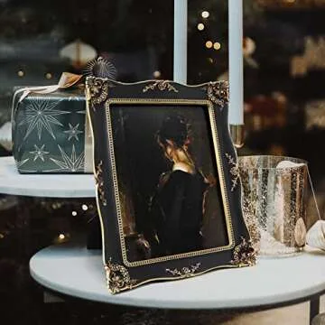 Show more The exquisite 8x10 antique picture frame is a true testament to craftsmanship and artistic design. Made from high-quality resin, this frame flaunts a glossy texture that not only enhances its aesthetic appeal but also provides durability. With its retro design, the ornate flower patterns carved into the frame evoke a charming old-world atmosphere. The unique, wave-like shape and the corner rivet ornament further enhance its nostalgic allure, making it a standout piece.