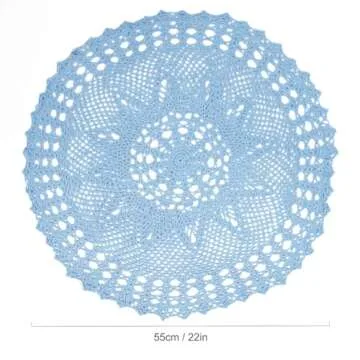 Each doily is carefully handmade through a traditional crochet process, ensuring no two pieces are exactly alike. The intricate design adds a touch of elegance, reminiscent of the doilies seen in beloved family homes. The soothing blue hue invites tranquility and grace into your space, making it a versatile choice for any room. Whether you're hosting guests or simply enjoying a quiet evening, this doily will undoubtedly impress.