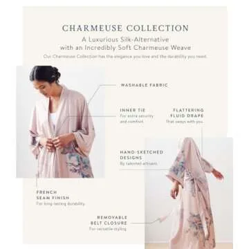 KIM+ONO Women's Charmeuse Kimono Robe Long - Aimi - Forest (green)