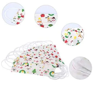 Show moreIntroducing the KIMARS Kids Face Masks for Children—the ideal protective solution for your little ones! Designed specifically for children, each disposable mask in this 50-pack is crafted with the utmost care to ensure comfort, durability, and safety. Made from breathable materials, these masks allow for easy airflow while effectively filtering out dust, pollen, and other particles. With a fun Christmas design, they’re perfect for keeping kids protected during holiday gatherings, school events, or any social activities, making them a staple for every family.