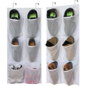 KIMBORA 2 Packs Narrow Over the Door/Wall Shoe Organizer, Small Hanging Shoe Rack for Closet with Clear Mesh Pocket for Bathroom, RV, Pantry, Camping (White)