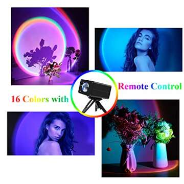 Kimfly Sunset Projection Lamp - Sunset Projector Lamp with 16 Light Modes & Remote Control,Flexible Adjustable Head Projector Light with USB Cable for Photo Video Vlog Party Bedroom Living Room Decor