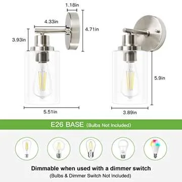 Kimjo Bathroom Wall Sconce, 1 Light Bathroom Vanity Light Brushed Nickel, Modern Wall Light Fixtures with Glass Shade, Industrial Wall Sconce Lighting for Bedroom Kitchen Hallway Farmhouse Wall Lamp