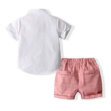 Kimocat Boy Gentleman Outfit Short Sleeve T-Shirt with Fake Vest Pants and Bowtie,Boys Casual 2Pcs Suits (2-3T, Pink)