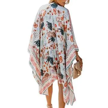 Kimonos for Women Boho Style with Belts Open Front Beach Cover-Ups Chiffon Jacket Resort Wear Beach Wear (Multicolored, Medium)