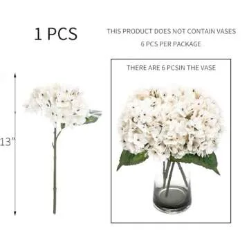 Kimura's Cabin 6pcs Fake White Flowers Artificial Silk Hydrangea Flowers Bouquets Faux Hydrangea Stems for Home Table Centerpieces Wedding Party Decoration(Lvory White)