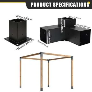 Kinchoix 4x4 Woodworks Pergola Brackets Kit, 3-Way Corner Extension Brackets, Black Powder Coated, 4x4 Metal Brackets for Wood Beams, Fence, and Carport (Actual: 3.5""x3.5""), SKU00053-3T4P