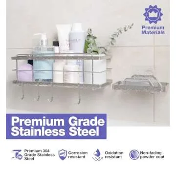 Show more Introducing the perfect solution for an organized and elegant bathroom – the premium rustproof 304 stainless steel bathroom caddy. Crafted with high-quality materials, this durable shower caddy is designed to stand the test of time. No rust, no corrosion, and an exquisite finish that maintains its look for years. Say goodbye to boring and messy bathrooms with this sleek, modern shower shelf that combines aesthetics and practicality.