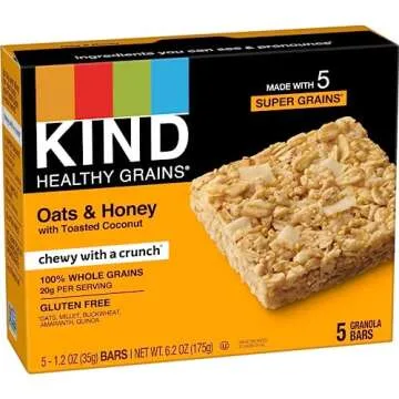 KIND Healthy Grains Bars, Oats & Honey with Toasted Coconut, Non GMO, Gluten Free, 1.2 oz, 5 Count