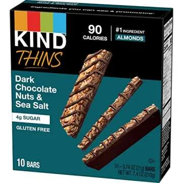 KIND THINS Dark Chocolate Nuts & Sea Salt Bars (Now with Peanuts), Gluten Free, 4g Sugar, 0.74 oz bars, 10 count