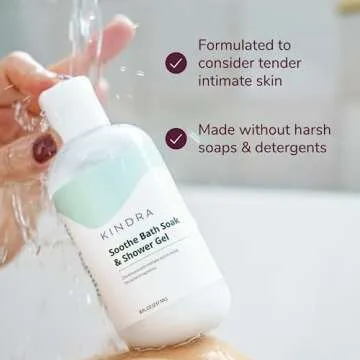 Show more Introducing the Kindra Soothe Soak, an innovative hydrating vulva feminine wash specifically designed for women who experience vulvar and vaginal discomfort. This gentle yet effective cleanser addresses the delicate needs of tender skin, helping to restore and maintain pH balance during crucial phases such as postpartum healing, hormonal shifts from oral contraceptives, and the natural changes of menopause. With its fragrance-free formulation, it provides soothing relief without irritating your sensitive skin.