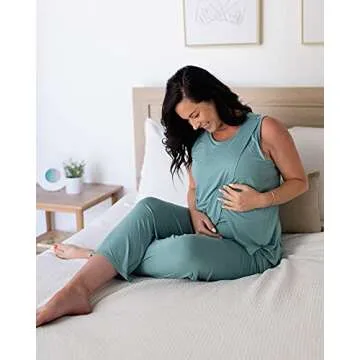 Kindred Bravely Tulip Hem Maternity Pajamas & Post Partum Lounge Sets For Women | Postpartum Pajamas For Hospital (Aqua, Medium)