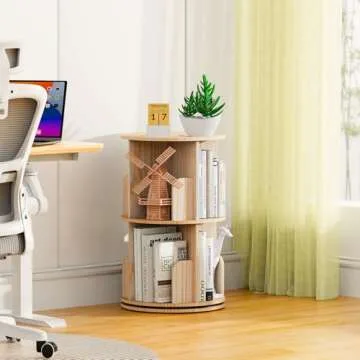 Kinembold Small Rotating Bookshelf - Stylish 2 Tier 360 Display with Ample Storage Space