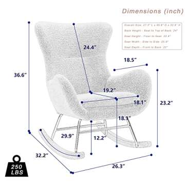 KINFFICT Nursery Rocking Chair, Teddy Velvet Upholstered Glider Rocker Rocking Accent Chair with High Backrest, Mid Century Modern Armchair Comfy Side Chair for Living Room Bedroom Offices