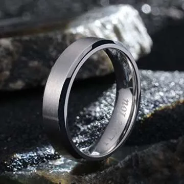 The King Will wedding ring is more than just a piece of jewelry; it’s a profound symbol of love and commitment. Crafted with care, this ring features a 6mm plain design that not only looks elegant but also embodies the essence of romance with its laser-etched 'I Love You'. This thoughtful design ensures that your love is always close at hand, making it a perfect accessory for any occasion.