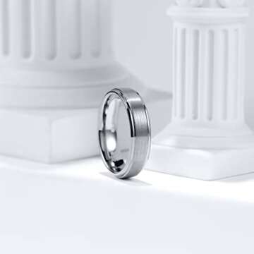 King Will BASIC 6mm Mens Titanium Wedding Ring Brushed Finished Wedding Band Comfort Fit Stepped Edge 8