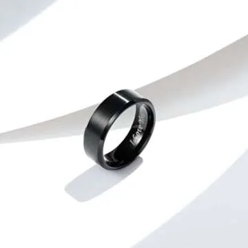 Show moreIntroducing the King Will BASIC 8mm Stainless Steel Ring, a perfect blend of style, durability, and sentiment. Crafted with meticulous attention to detail, this ring features a striking black plated matte finish that pairs effortlessly with its polished beveled edges. The laser-etched "I Love You" inscription serves as a constant reminder of the bond you share with that special someone. Made from high-grade stainless steel, this piece is not only designed for elegance but also built to endure everyday wear, making it an ideal accessory for any occasion.