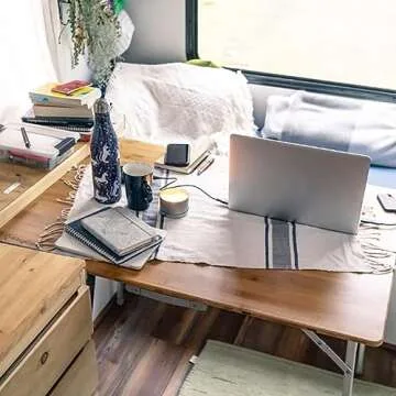 KingCamp Bamboo Folding Table Portable Camping Table Adjustable Height Camp Table 2-Folds for Travel, Picnic, Beach, Outdoor and Indoor, 4-6 People