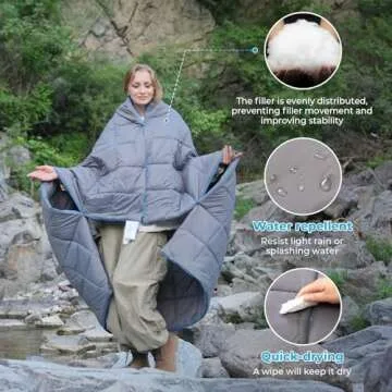 KingCamp Camping Blanket Lightweight, Multifunctional Warm Puffy Outdoor Blanket with Snap Button, Water Repellent, Backpacking Quilt for Travel, Airplane, Hiking, Picnic