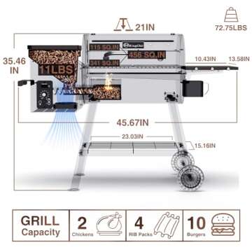 KingChii 456 SQ.IN Pellet Grill Smoker with Side Shelf, BBQ Grill with PID Temperature Control for Outdoor Cooking, BBQ Camping and Patio, Brown(Cover Including)