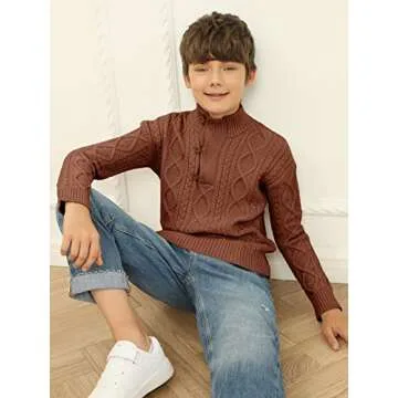 Kingdenergy Kids Sweaters Boys Turtleneck Button Up Cable Knit Winter Warm Long Sleeve Fall Pullover Sweater Tops