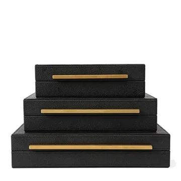 Kingflux Faux Black Shagreen Leather Set of 3 Pcs Decorative Boxes