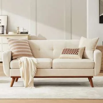 Kingfun 2 Piece Loveseat and Sofa Sets, Mid Century Modern Decor Love Seat Couches for Living Room, Button Tufted Upholstered Furniture, Easy to Install Small Couch for Bedroom, Office, Beige