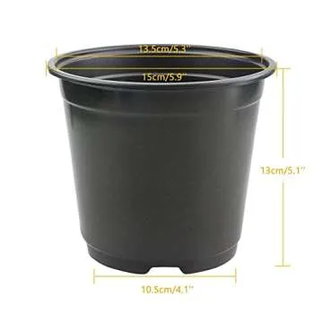 Show moreGet ready to elevate your gardening experience with the KINGLAKE 100 Pcs 6" Plastic Plants Nursery Pots. These nursery pots are designed specifically for nurturing plants, cuttings, and seedlings. With a 6-inch opening diameter and a height of approximately 5 inches, these pots feature a bottom lower caliber of 4 inches, ensuring ample space for root development and growth. Crafted from durable yet lightweight plastic, they combine strength and flexibility, making them ideal for various gardening projects.