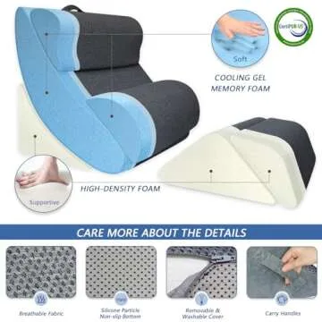 Show moreTransform your recovery and relaxation experience with the KingPavonini 6PCS Orthopedic Bed Wedge Pillow Set. Tailored to offer unparalleled support for those recovering from surgery or individuals experiencing back, neck, or leg discomfort, this innovative set is a game-changer for anyone seeking relief from ailments like acid reflux, GERD, heartburn, and snoring. Crafted with an ergonomic design, the KingPavonini wedge allows for proper spine alignment and elevation, making your healing process not only effective but also more comfortable. The included travel bag and versatile configurations make it easy to incorporate into any lifestyle, allowing you to find your ideal position whether at home or on the go.