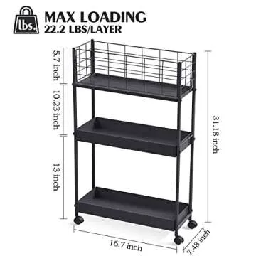 Show more Introducing the ultimate solution for your storage woes, the multifunctional storage cart is here to transform the way you organize your space. With its sleek design and high mesh guardrail, this rolling cart not only offers functionality but adds a modern touch to any room. Crafted by a renowned brand that emphasizes durability and user-friendly functionality, this cart is perfect for quick access and organization of daily items. Its versatility allows it to serve multiple purposes; whether you need a bathroom dresser, a kitchen spice rack, or a mobile utility cart for your office, this product adapts to your needs.