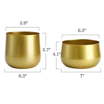 Show moreIntroducing the Kingrol 2 Pack Modern Gold Planters—a perfect blend of elegance and functionality for your home or office. Designed with a round silhouette, these metal flower pots not only elevate your plant display but also bring a touch of sophistication to any living space. Each planter is expertly crafted with thoughtful drainage holes to ensure your plants thrive, making them both decorative and practical. The stunning gold finish adds a modern flair, making these pots an instant focal point whether placed in the living room, kitchen, or your stylish office setup.