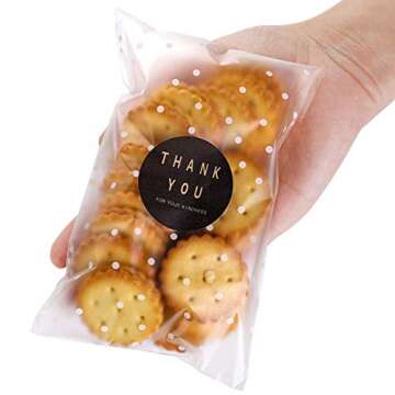 Show moreIntroducing the Kingrol 300 Pcs 4 x 6 Inch Self Adhesive Candy Bags, the perfect solution for all your party favor needs! Crafted from premium quality materials, these transparent plastic bags offer a clear view of your delightful treats, from cookies and chocolates to snacks and soaps. Their self-adhesive closure guarantees that your goodies stay fresh and secure, making them a reliable choice for any event! Each pack includes 300 beautiful Thank You stickers to add a personal touch, ensuring your guests feel appreciated. With a versatile size of 4 x 6 inches, these bags are ideal for wrapping a variety of items, making them a must-have for your next celebration.