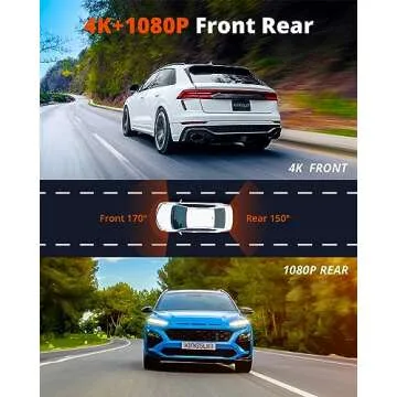 Kingslim Dash Cam Front and Rear 4K - D4 Dual Dash Camera for Cars WiFi GPS, Dashcam with 32GB SD Card, 3" Touchscreen, Night Vision, APP, Parking Mode, G-Sensor, Black