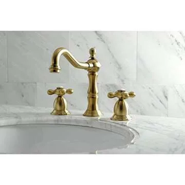 Kingston Brass KS1977AX 8 in. Widespread Bathroom Faucet, Brushed Brass, 8 x 7.56 x 7.44