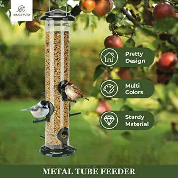 Show moreIntroducing the Kingsyard Metal Bird Feeders for Outdoors Hanging – a perfect addition to your garden that brings nature right to your doorstep. Crafted with durable metal and featuring a sturdy anti-rust powder-coated finish, this bird feeder is designed to withstand the harshest outdoor elements including rain, wind, and even curious squirrels! Measuring 15 inches and featuring a traditional tube design, it combines functionality with aesthetics, inviting a variety of beautiful birds into your garden year-round.