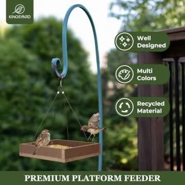 Show more Introducing the Kingsyard Platform Bird Feeder, the perfect addition to any backyard or garden for passionate bird watchers and nature lovers alike. Crafted from high-quality recycled plastic, this feeder has been engineered to withstand the elements—whether it’s torrential rain, heavy snow, or intense sunlight, it promises remarkable durability without denting, cracking, or fading. Designed for year-round use, it not only provides an attractive spot for feeding birds but also exemplifies eco-friendly principles, making it a responsible choice for environmentally conscious consumers.