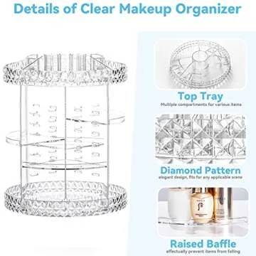 Kingtaily Rotating Makeup Organizer Spinning for Vanity, 360 Rotation with 6 Adjustable Layers, Large Capacity Vanity Skin-care Organizers Clear Perfume