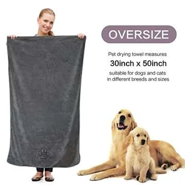 KinHwa Dog Towel Super Absorbent Pet Bath Towel Microfiber Dog Drying Towel for Small, Medium, Large Dogs and Cats 30inch x 50inch Dark-Gray