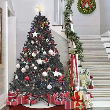 KINSOHOME 7.5FT Black Christmas Tree, Artificial Christmas Tree, 1750 PVC Branch Tips, Premium Hinged Spruce Xmas Pine Tree with Sturdy Metal Stand for Home, Office, Party Holiday Decoration