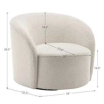 Show moreIntroducing the KINWELL 34" W Mid Century Modern Swivel Barrel Chair, a striking piece that seamlessly blends style, comfort, and functionality. Ideal for anyone seeking to enhance their living space, this chair is crafted with luxurious boucle upholstery that adds a touch of modern elegance to any room while ensuring a cozy, soft seating experience. Whether you're enjoying a quiet moment with a book or entertaining guests, this chair is designed to elevate your relaxation and elevate your space.