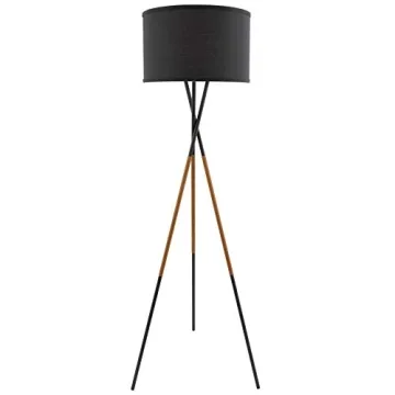 Show more Introducing the Kira Home Sadie 61" Mid Century Modern Tripod LED Floor Lamp, a perfect blend of style, functionality, and eco-conscious design. This modern floor lamp isn't just a source of light; it serves as a stunning statement piece that elevates the aesthetic of any room. With a minimalist design featuring a sophisticated black fabric shade, it emits a warm and inviting glow, creating a cozy ambiance ideal for evenings spent reading or entertaining guests. Its three stylish metal legs, finished in sleek black and enhanced with elegant stitched faux leather accents, make this lamp an excellent choice for homeowners and interior designers looking to add a touch of elegance to their spaces.