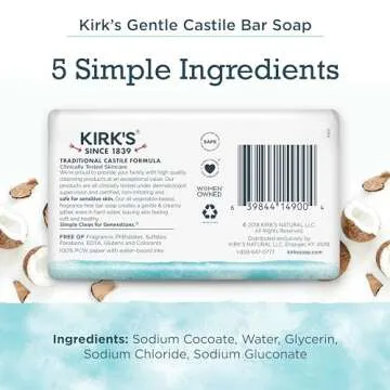 Kirk's Castile Bar Soap for Men, Women & Children - Made with Premium Coconut Oil, Sensitive Skin Formula- Vegan & Non GMO- Fragrance Free- 4 oz. Bars 6 Pack