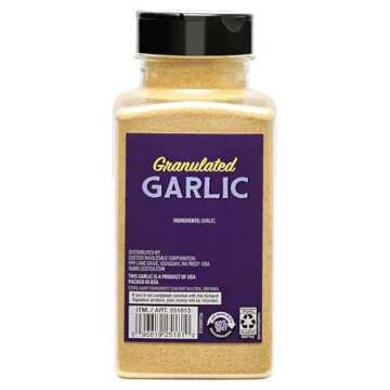 Show moreElevate your culinary game with Kirkland Signature California Granulated Garlic, a premium product sourced from the heart of the U.S.A. Offering exceptional flavor and convenience, this 18 oz container features finely granulated garlic that seamlessly infuses your dishes with a robust, authentic taste. Ideal for both seasoned chefs and home cooks, this versatile seasoning is perfect for enhancing everything from savory meats to roasted vegetables and pasta dishes. With its long shelf life, you can always keep this aromatic staple on hand, ensuring your meals are never lacking in flavor.