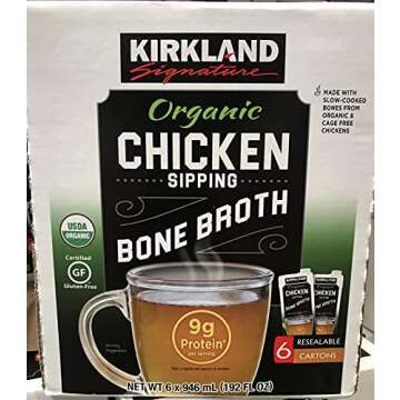 Kirkland Signature Organic Chicken Bone Broth, 32 Fl Oz, 6 Count