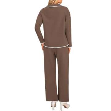 Show moreIntroducing the KIRUNDO 2 Piece Sets for Women, the ultimate fall loungewear that combines comfort, style, and versatility. Crafted from a soft, breathable knit fabric, this set features an oversized long sleeve V-neck pullover that drapes effortlessly on the body, providing an elegant yet relaxed fit. The light coffee color sets a warm and inviting tone, perfect for fall chill. The accompanying wide-leg pants optimize comfort with an elastic waistband, making them suitable for casual outings or cozy days indoors. This complete outfit is a must-have for every woman's wardrobe, transforming your loungewear into chic street style.